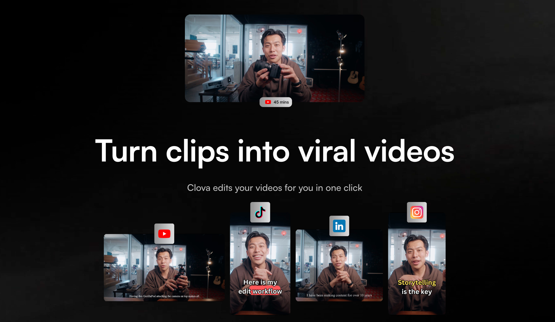 Turn clips into viral videos. Clova edits your videos for you in one click