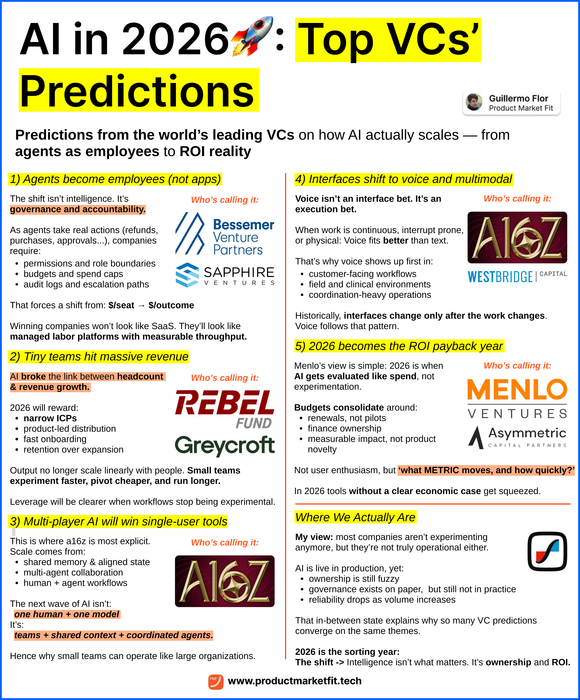 Across top venture firms (Menlo, a16z, Bessemer, Khosla, A16Z), a clear set of predictions is emerging:
